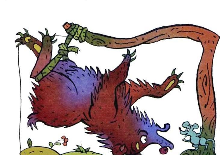 Смотрит, а её силач-сосед в ловушке. Мышка перегрызла петлю и освободила Медведя.
