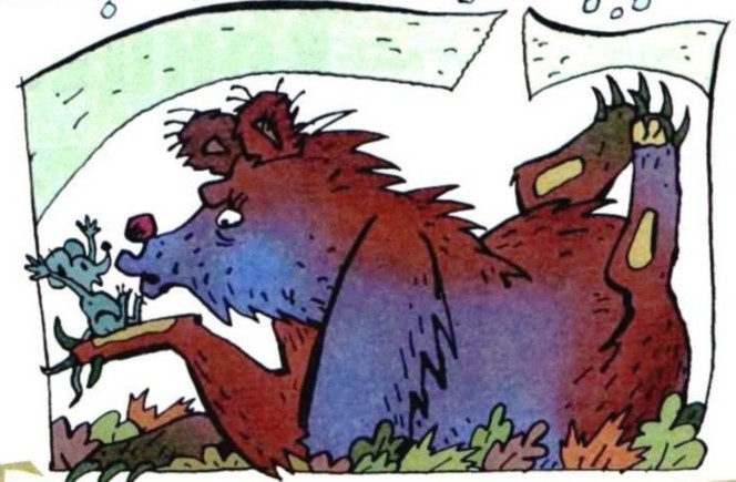 Медведь сказал: «Моё ухо - нора для тебя, что ли? Вот раздавлю тебя сейчас, как ягоду-малину!»